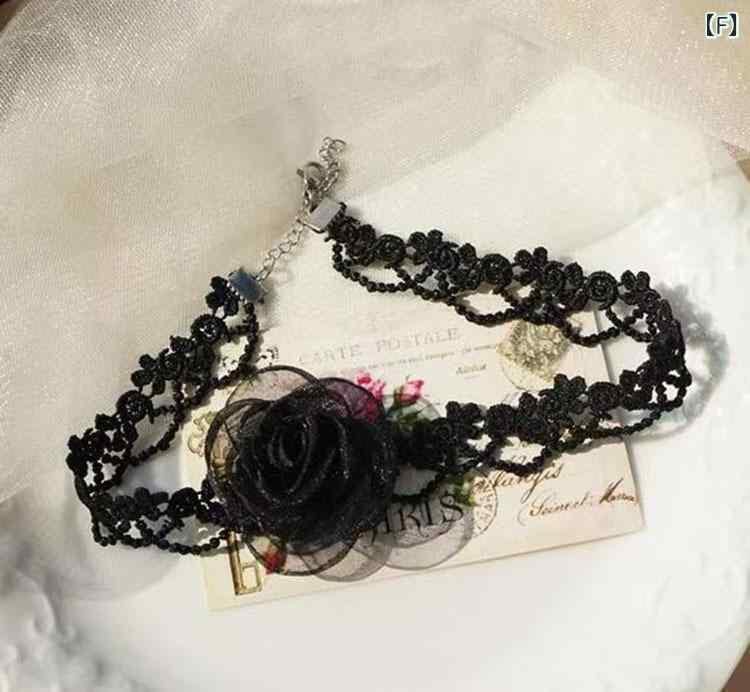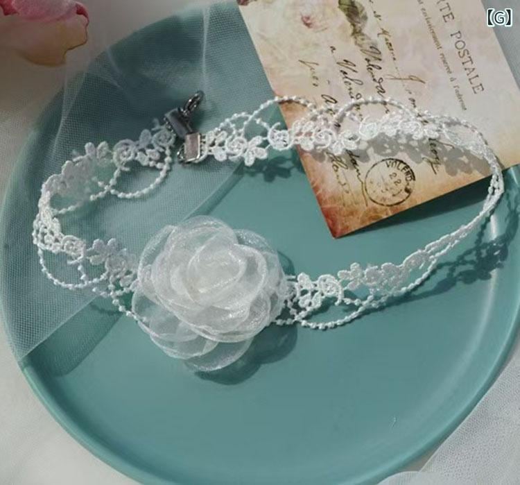 チョーカー レディース 森ガール系 スイート フェミニン ロリータ チュール レース フラワー 花モチーフ 蝶々 リボン 高級感 ハンドメイド 鎖骨チェーン ショートネックレス 首元アクセサリー