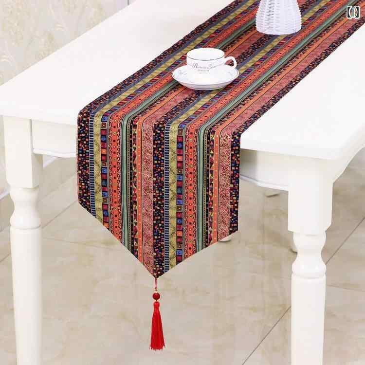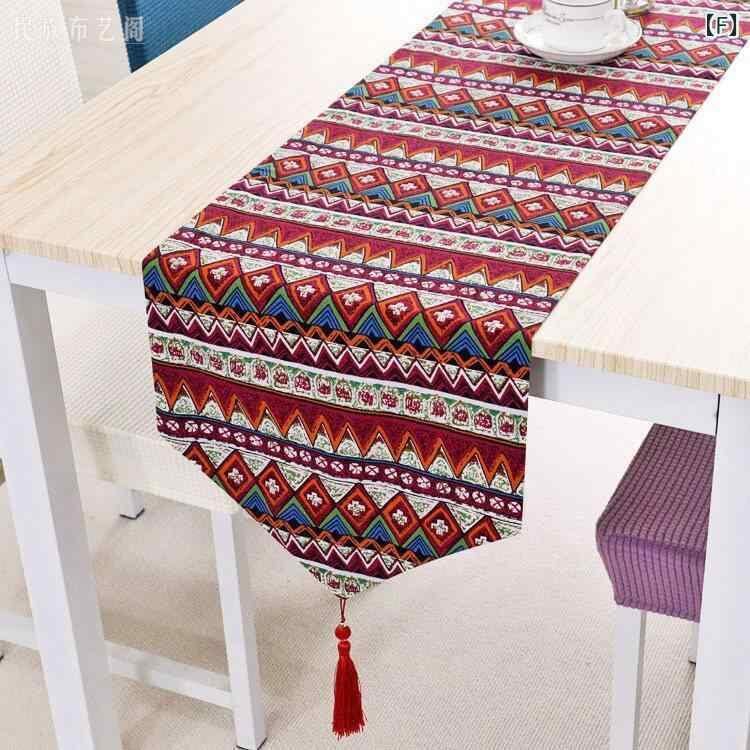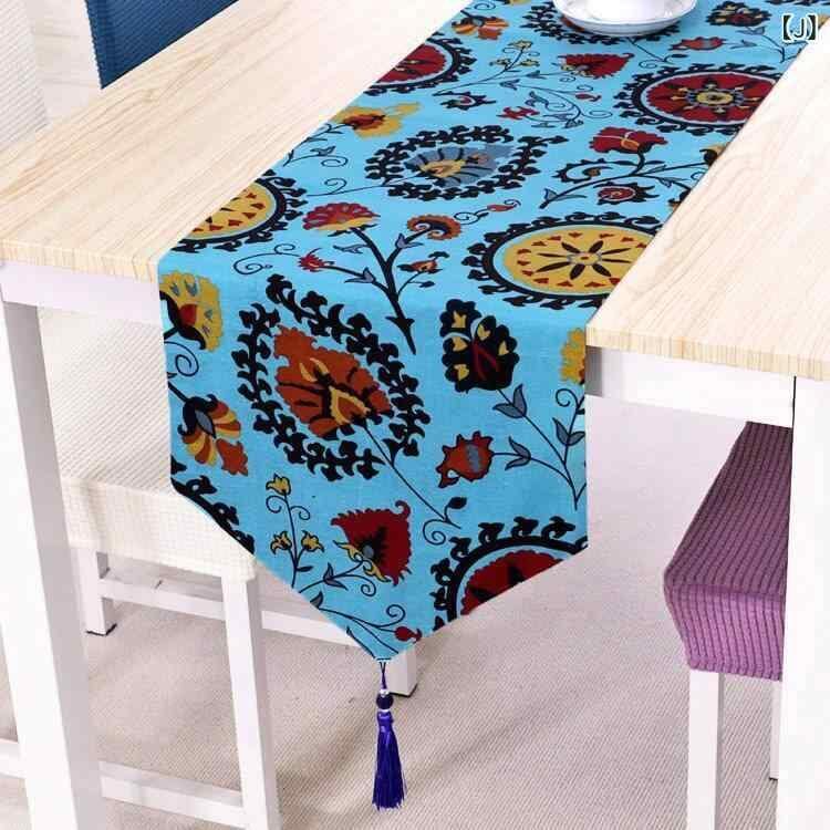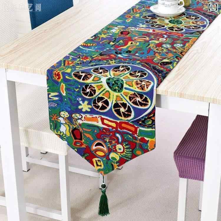 テーブルランナー 綿麻 民族風 エスニック レトロ ビンテージ 東南アジア アジアンテイスト ボヘミアン 花柄 植物柄 耐熱 ベッドランナー センタークロス コーヒーテーブル 玄関 シューズラック リビング ダイニング 寝室 装飾 ファブリック