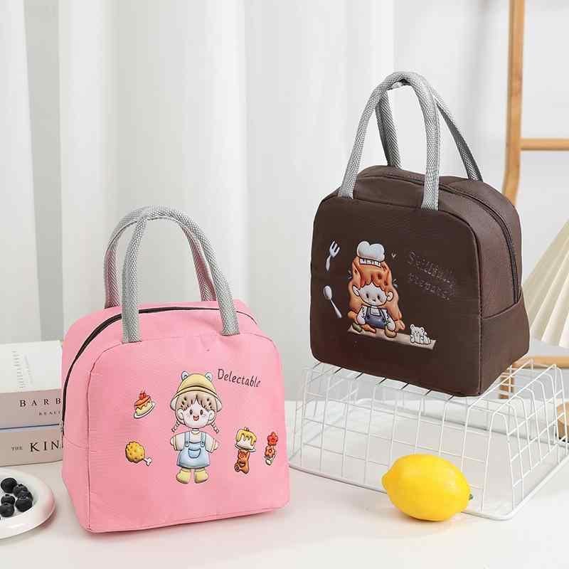 ランチバッグ 保温 保冷 大容量 手提げ トートバッグ オックスフォード生地 厚手 かわいい おしゃれ 通勤 通学 お弁当 ピクニック レジャー くま柄 イエロー ピンク ブラウン ベージュ