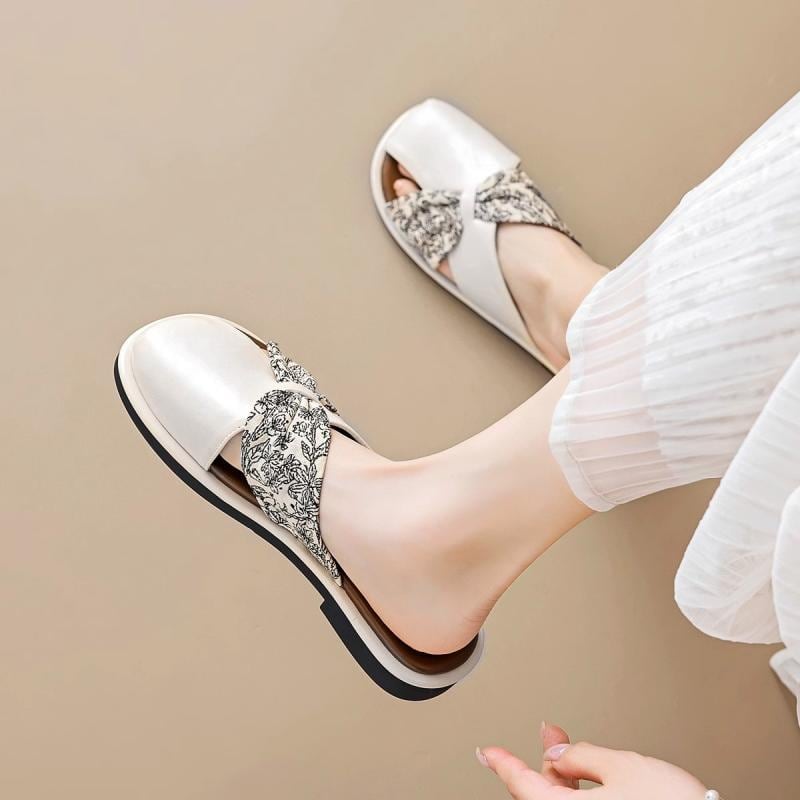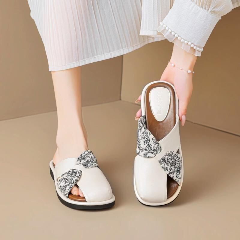 サンダル レディース 女性用 ミュール スリッポン かかとレス つま先あり クローズドトゥ 高級感 カジュアル 外履き お出かけ 夏用 超繊維素材 通気性 蒸れない 大きいサイズ ゆったり 杏色 アプリコット ベージュ系