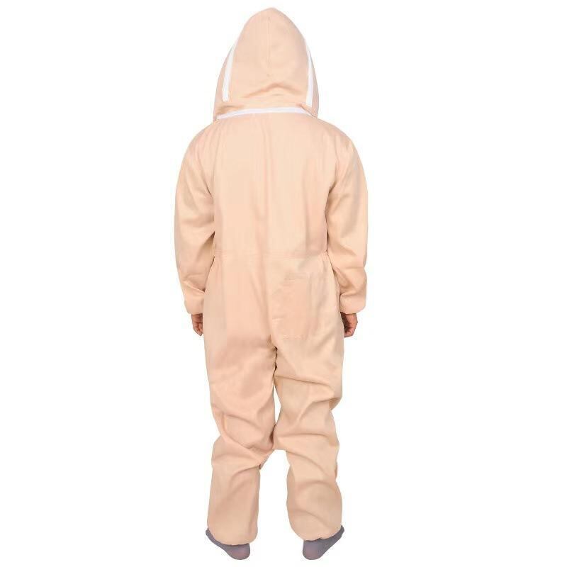 養蜂用品 防蜂服 プロ仕様 厚手 杏色 アプリコットカラー ハチ対策 蜂対策 防護服 作業着 全身保護 つなぎ 分離型 羊革手袋 帆布生地 養蜂作業用 安全 防刺 保護スーツ セット