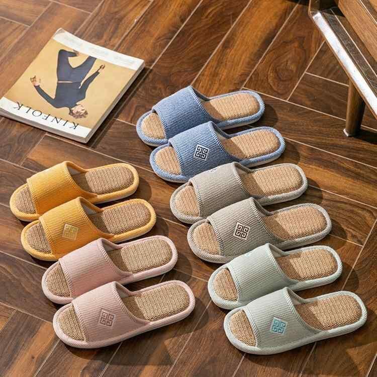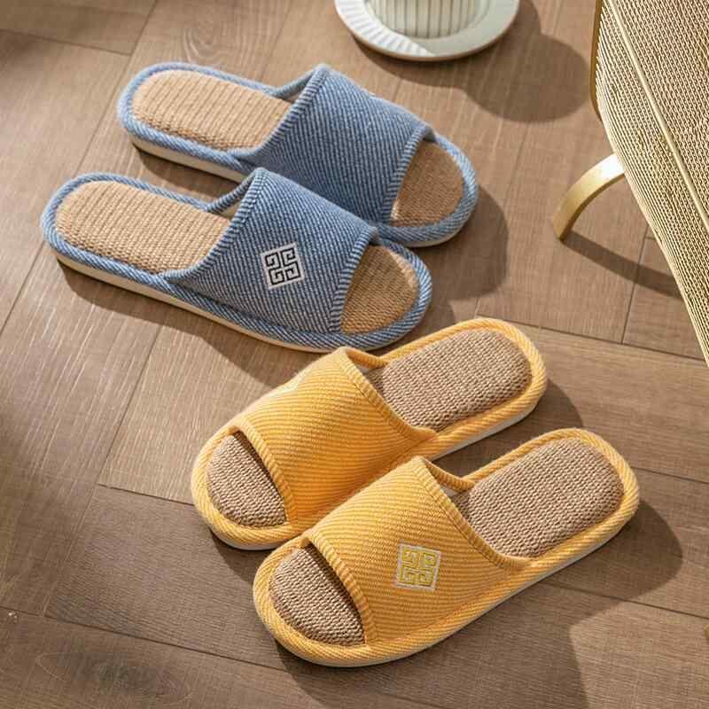 スリッパ 男女兼用 リネン 麻 ルームシューズ 室内履き 外履き ベランダ 春 夏 秋 滑り止め 手縫い ハンドメイド コットン 綿 通気性 蒸れない 薄手 軽量 クッション性 韓国風 おしゃれ カップル ペア オリエンタルデザイン 多色展開