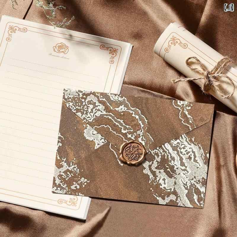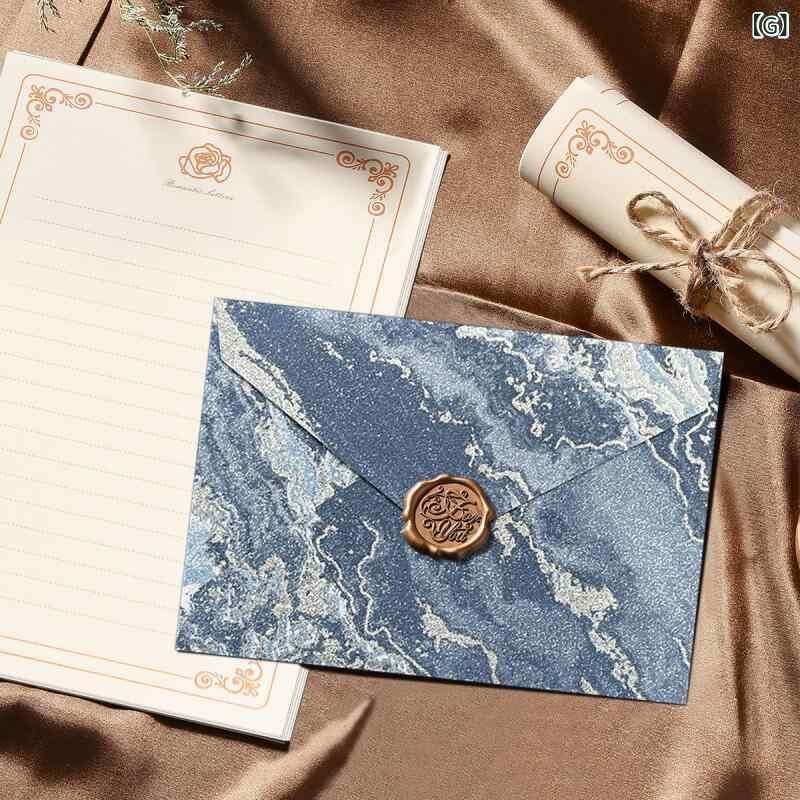 レターセット 金箔 エンボス加工 封筒 便箋 厚手 ロマンチック レトロ調 アンティーク風 手書き ラブレター 告白 プロポーズ 招待状 案内状 シーリングワックス対応 上質紙 大切なメッセージ