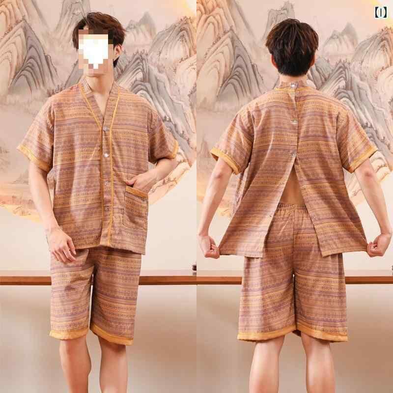 施術着 エステウェア マッサージウェア 綿 コットン 超厚手 保温 背中開き 前開き ガウン 温活 リラックス お灸 サウナ 岩盤浴 男女兼用 スパ サロンウェア