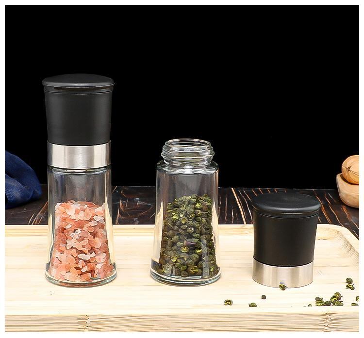 スパイスミル 手動 ガラス製 グラインダー ペッパーミル 胡椒 花椒 香辛料 固形調味料 調味料入れ キッチン 家庭用 卓上 透明 くびれ型 モダン シンプル