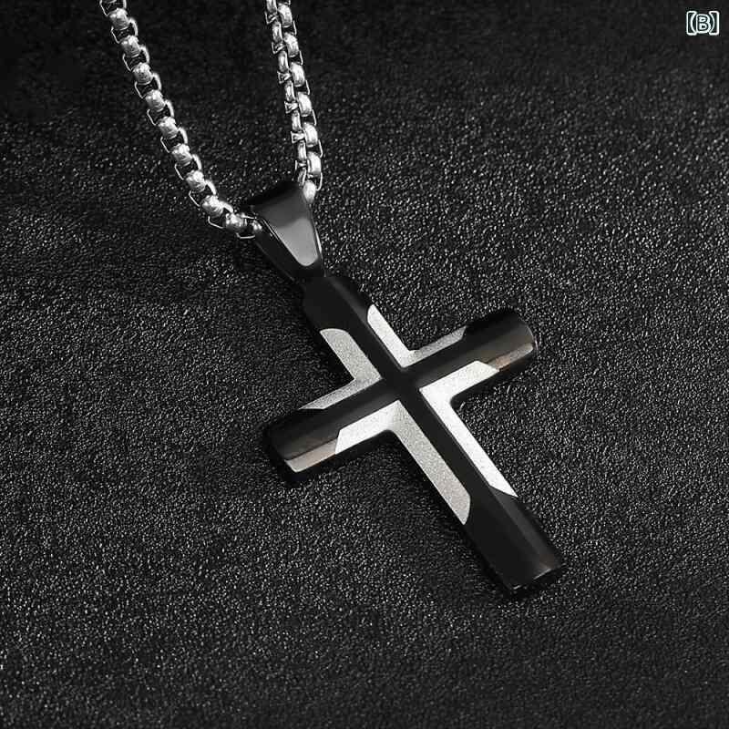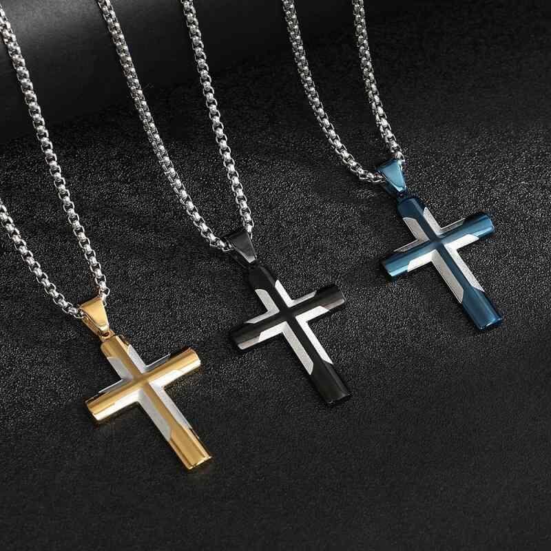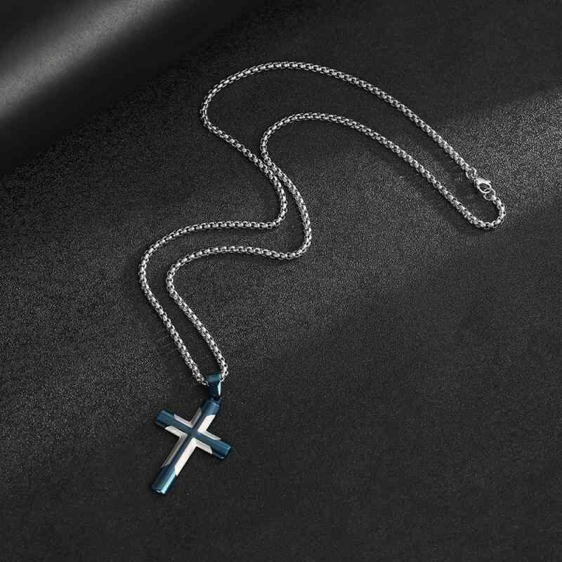 ネックレス メンズ シンプル ステンレス 十字架 クロス ヒップホップ ストリート カジュアル バイカラー 個性 デザイン メッキ加工 ゴールド ブラック ブルー
