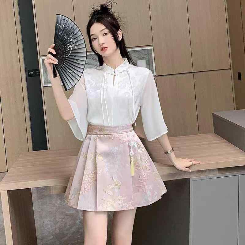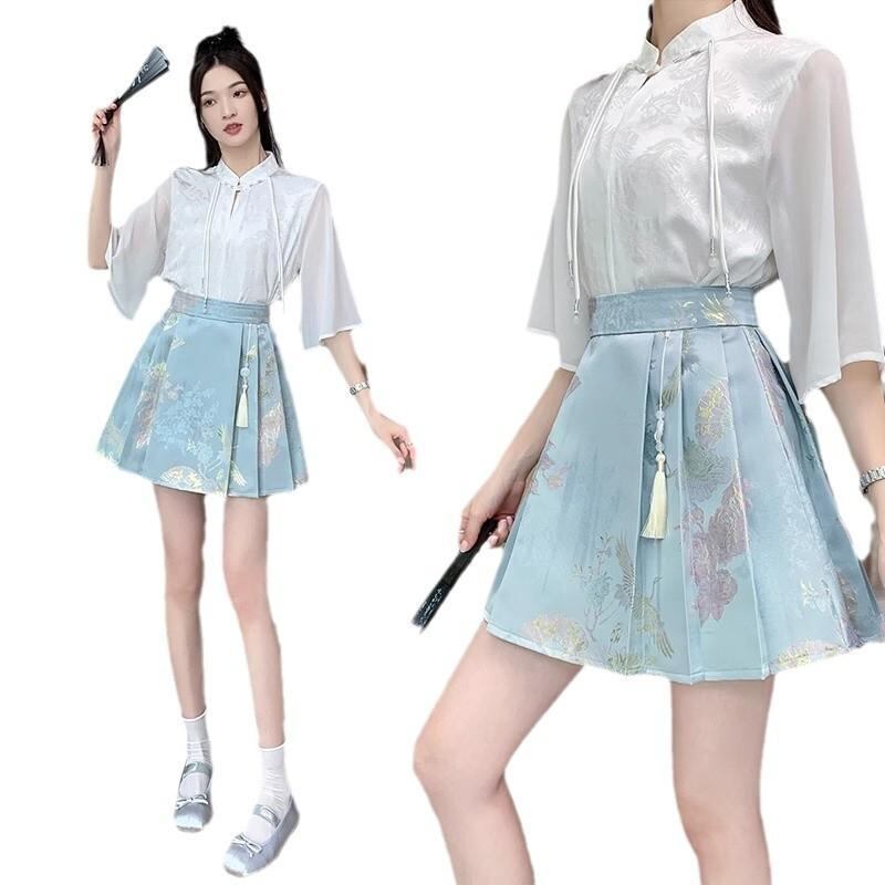 スカート レディース ミニ丈 馬面スカート ハイウエスト プリーツ サテン ジャカード織り ポリエステル 高級感 光沢感 細見え 着痩せ 中国風 チャイナ風 クラシカル レトロ エレガント お呼ばれ パーティー お出かけ