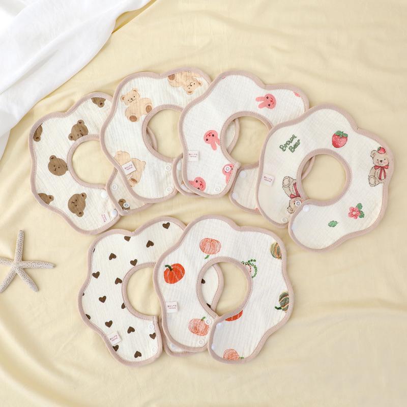 よだれかけ ベビー 新生児 赤ちゃん 乳幼児用 防水 クレープ生地 綿100% ガーゼ スタイ コットン 花びら形 キャラクター柄 動物柄 かわいい 食事エプロン ビブ ソフト 肌に優しい
