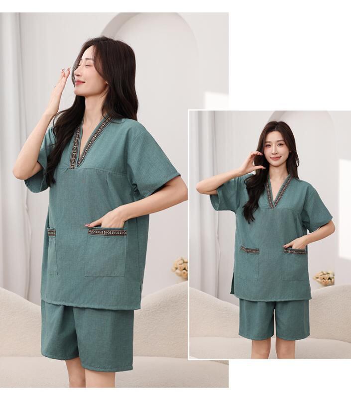 バスローブ カップル ペア 綿 麻調 サウナ 温泉 スパ マッサージ エステ リラックス 部屋着 ルームウェア 四季通用 胸元二重 高級感 モダン シンプル