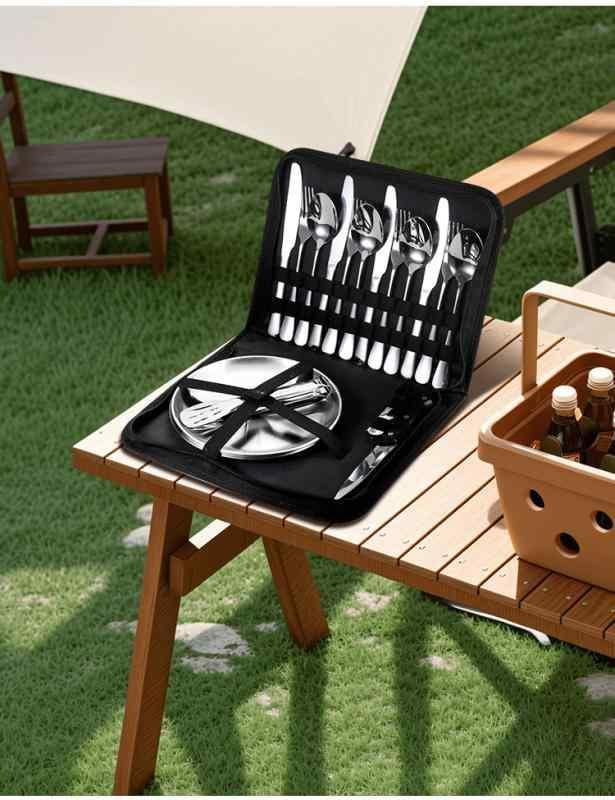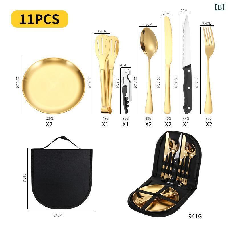 ・カテゴリ: カトラリーセット ・素材: 410ステンレス ・スタイル: ライトラグジュアリー、シンプル ・用途: アウトドア、キャンプ用食器 ・セット内容: ナイフ、フォーク、スプーンセット ・カラー展開: ゴールド、シルバー ・セット展開: アウトドアバッグ付き12点セット(シルバー)、アウトドアバッグ付き12点セット(ゴールド)、アウトドアバッグ付き20点セット(シルバー)、アウトドアバッグ付き20点セット(ゴールド)、アウトドアバッグ付き21点セット(シルバー)、アウトドアバッグ付き21点セット(ゴールド)