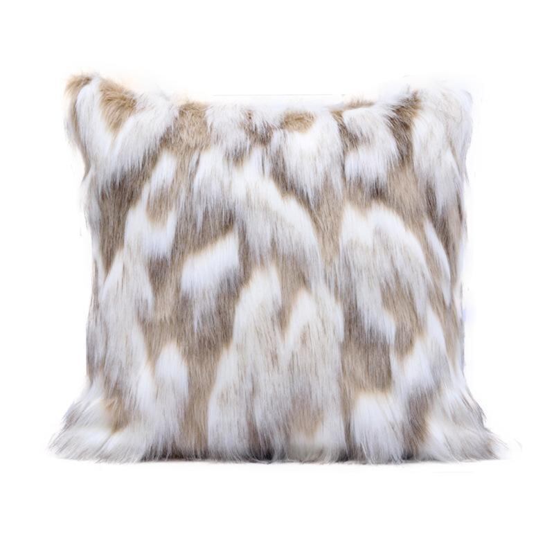 クッションカバー ソファ リビング ホテル モデルルーム用 フェイクファー フォックスファー調 ふわふわ 肌触り良い シンプル 高級感 エレガント モダン 淡色インテリア 韓国インテリア ポリエステル ミルクコーヒー色 アイボリー グラデーション