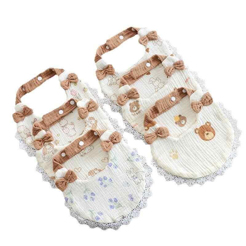 スタイ ベビー 赤ちゃん よだれかけ 6層 ガーゼ しわ加工 コットン 綿100% レースフリル プリンセス風 U型 吸水性 吸湿性 快適 肌に優しい 柔らかい 普段使い お出かけ イラスト柄 キャラクター柄 動物柄
