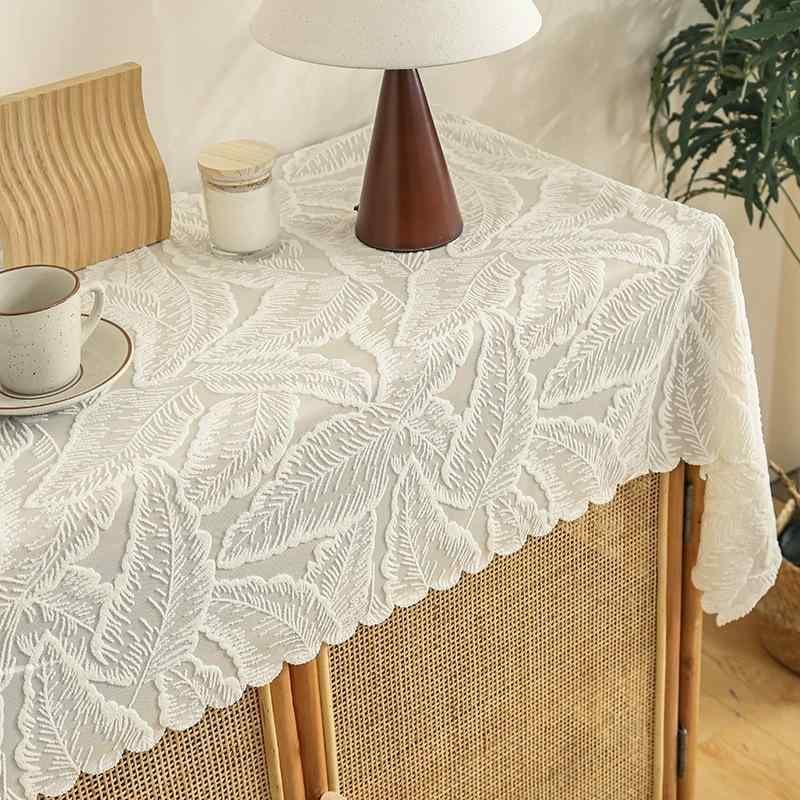 テーブルクロス フレンチスタイル レース 透かし編み 長方形 ポリエステル製 高級感 ダイニング リビング 食卓用 サイドボード キャビネット コーヒーテーブル対応 滑り止め 耐摩耗 防塵 装飾カバー