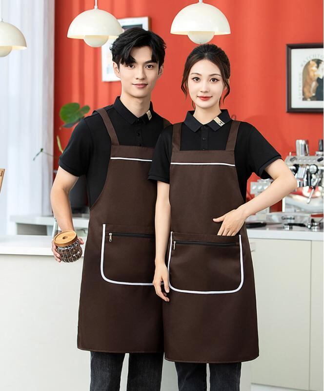エプロン 男女兼用 ファスナーポケット 撥水加工 作業服 飲食店 厨房 カフェ 料理 調理 名入れ ロゴ印刷 防汚 汚れ防止 無地 シンプル 作業用 ポリエステル混紡 フリーサイズ 黄色 赤 黒 緑 ベージュ ブラウン