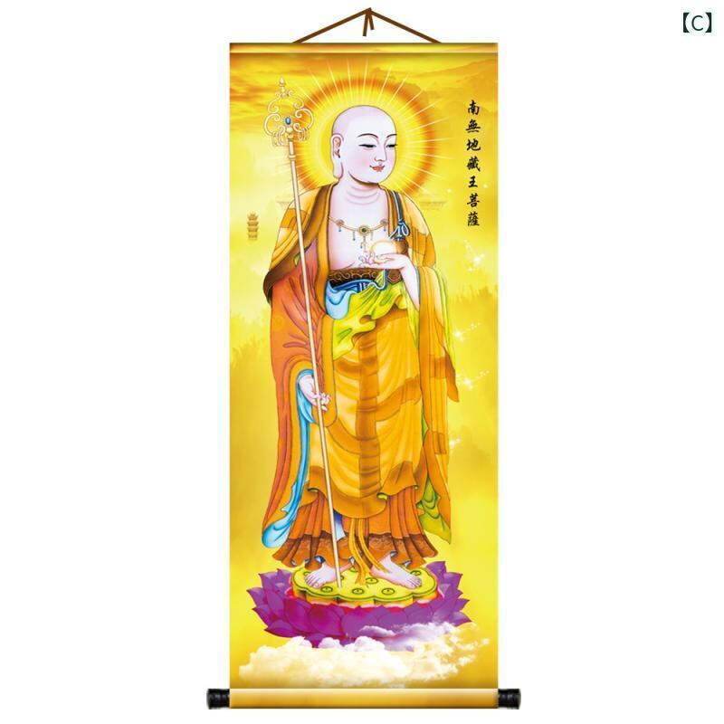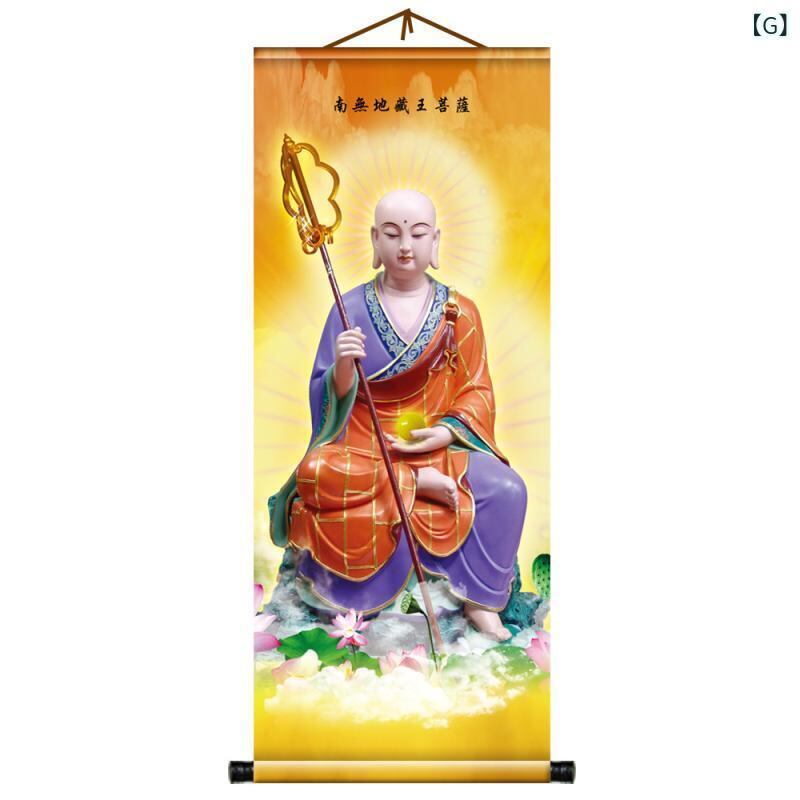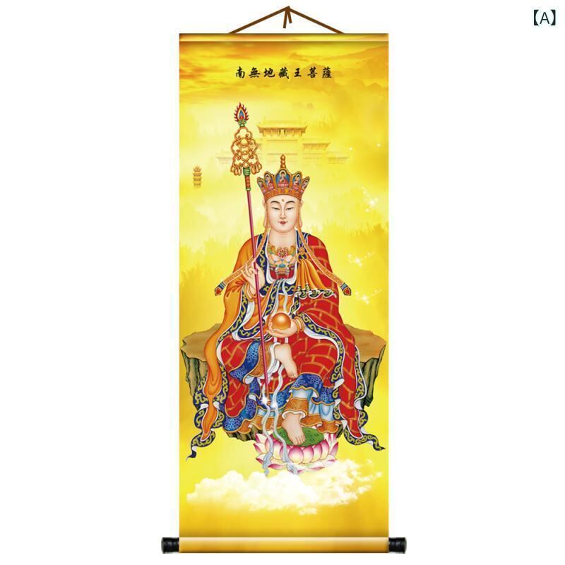 掛画 大願地蔵王菩薩 仏画 絹本 シルク 高精細 美術プリント 無垢材 木製フレーム 書斎 リビング 仏間 玄関 供養画 礼拝用 インテリア 装飾 アート 新中式 オリエンタルモダン 癒し 瞑想