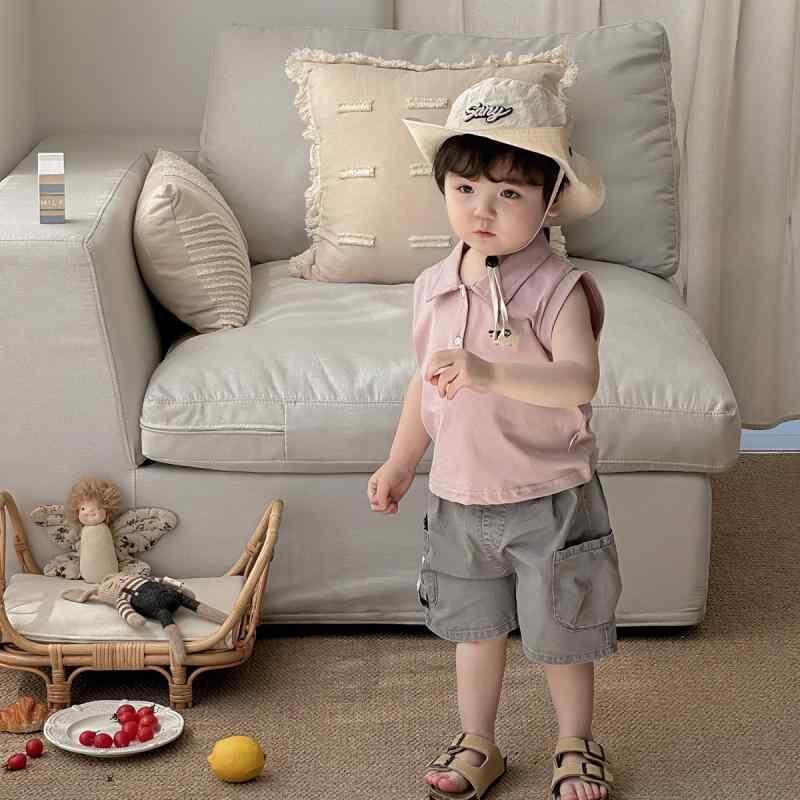 ベビー服 男の子 半袖 ポロシャツ トップス ショートパンツ 半ズボン セットアップ ツーピース 夏服 夏物 薄手 軽量 綿100% コットン カジュアル 普段着 お出かけ ルームウェア ピンク グレー