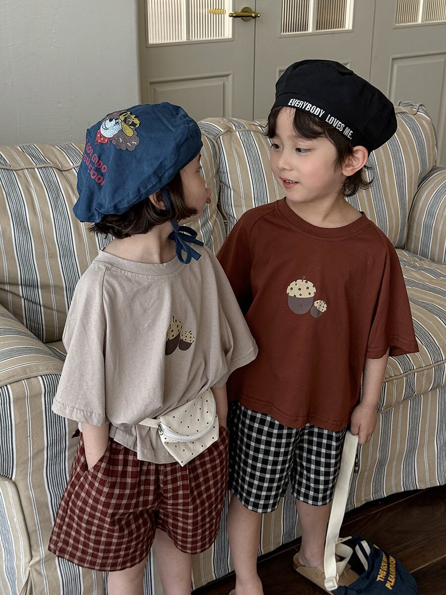 Tシャツ キッズ 男の子 女の子 ベビー 夏 半袖 キャラクター ゆったり 柔らかい 綿 吸湿速乾 ラウンドネック カジュアル 普段使い 通園 通学 ベージュ レッド