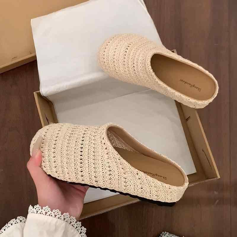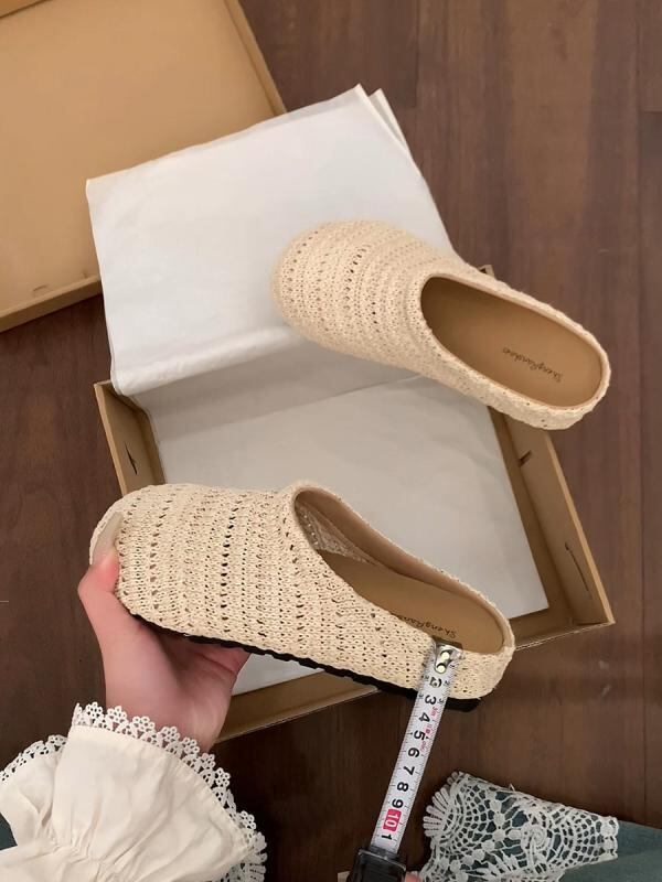 サンダル レディース クローズトゥ ミュール ベージュ 高級感 インヒール 厚底 滑り止め 麻素材 ラウンドトゥ シンプル 夏 外履き