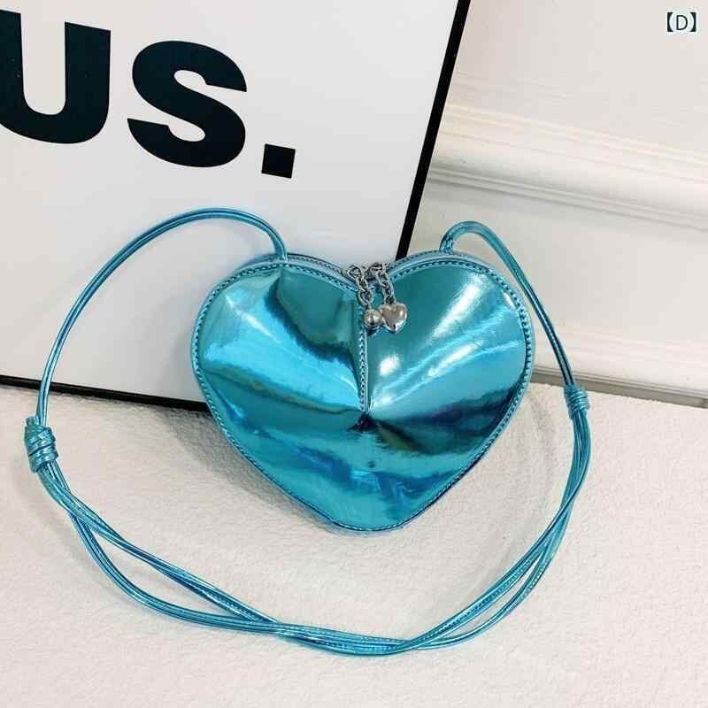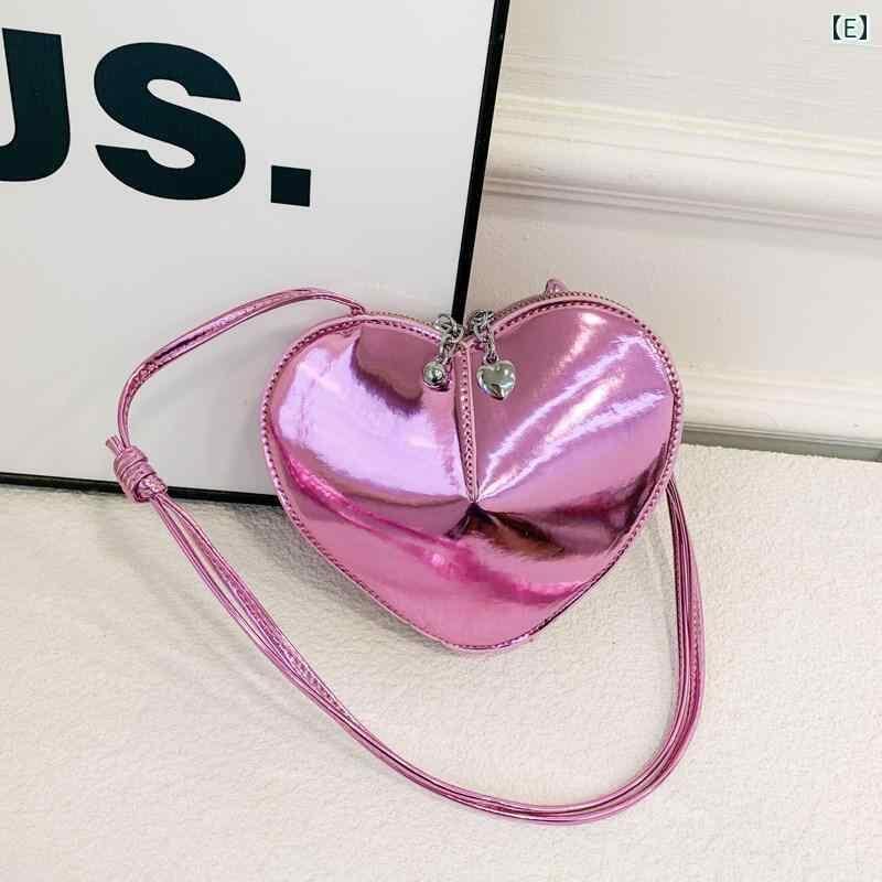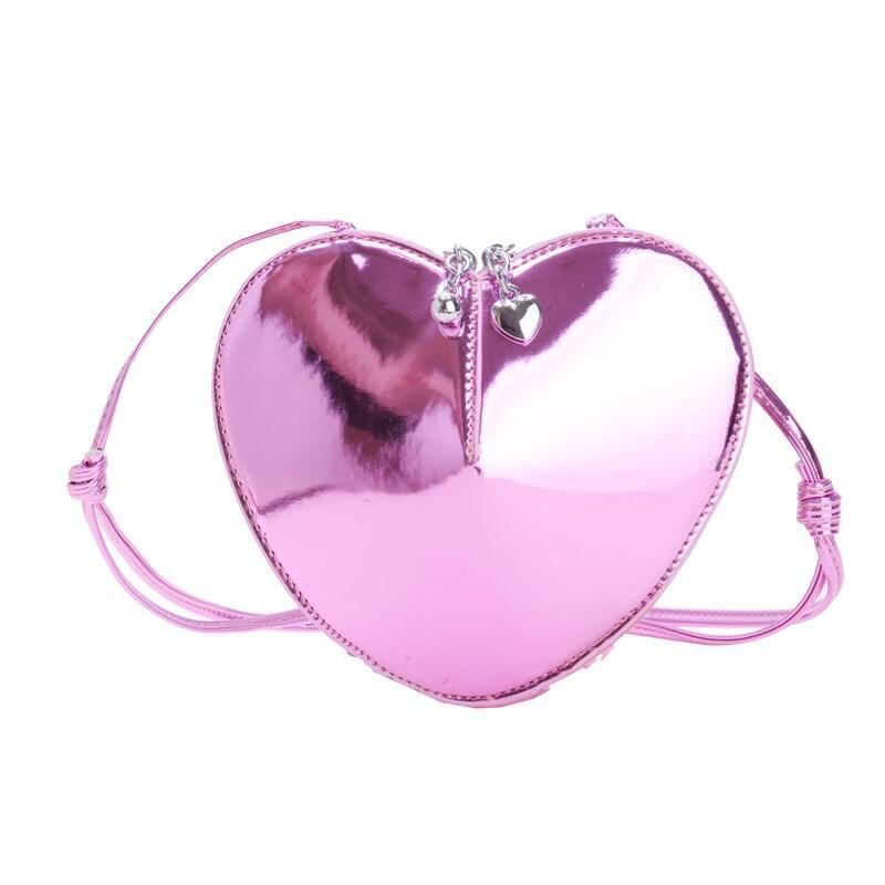 キッズ 女の子 ハート型 ミニショルダーバッグ ポシェット 斜め掛け 肩掛け PUレザー 軽量 耐摩耗性 おしゃれ かわいい 普段使い コインケース リップポーチ ブラック ピンク ブルー シルバー ゴールド
