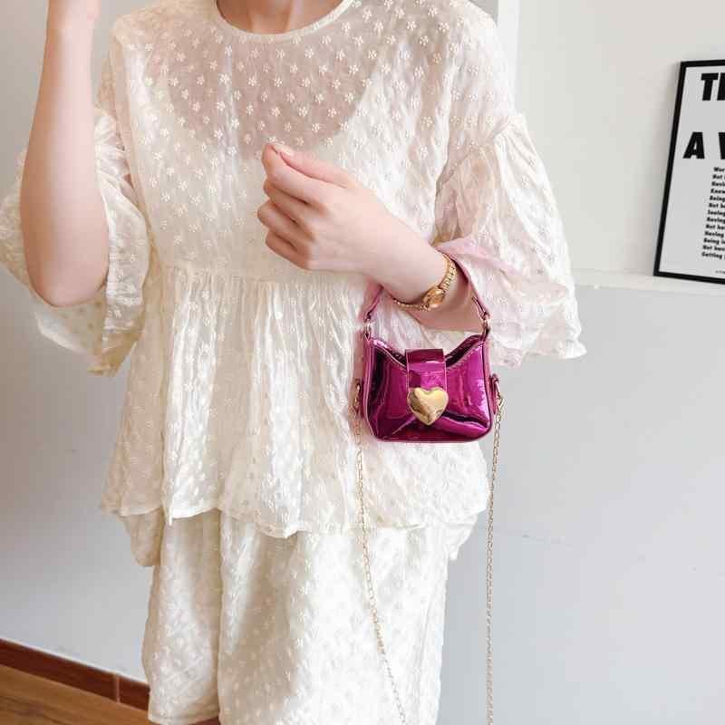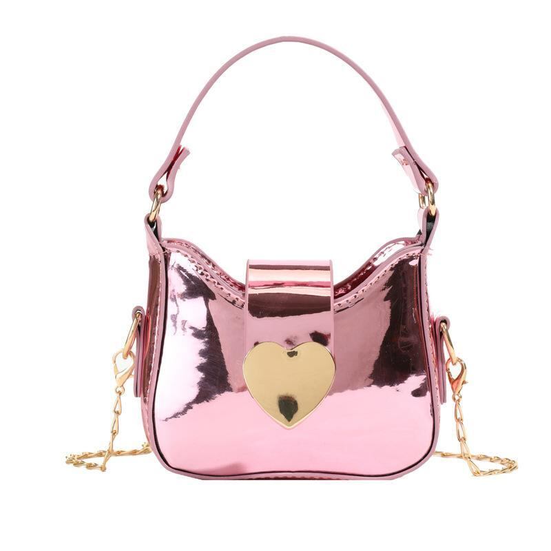 キッズ 女の子 バッグ ハート ミニ ショルダーバッグ 小銭入れ ポシェット 韓国風 おしゃれ かわいい PUレザー 合成皮革 軽量 丈夫 耐摩耗性 ステッチ 無地 普段使い デイリーユース 通園 通学 お出かけ