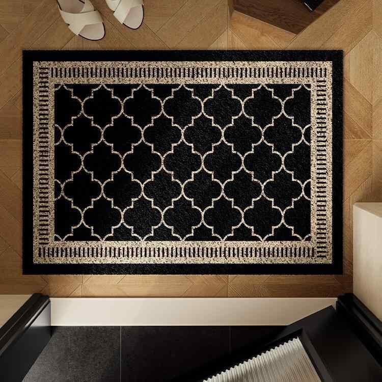 玄関マット PVC ループパイル フレンチ スタイル 幾何学模様 家庭用 室内 屋内 泥落とし 砂落とし 足拭き 滑り止め 厚手 自由裁断 水洗い スクエア