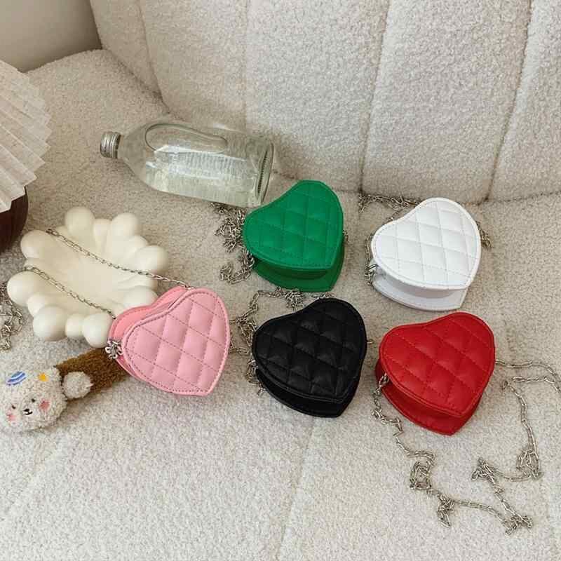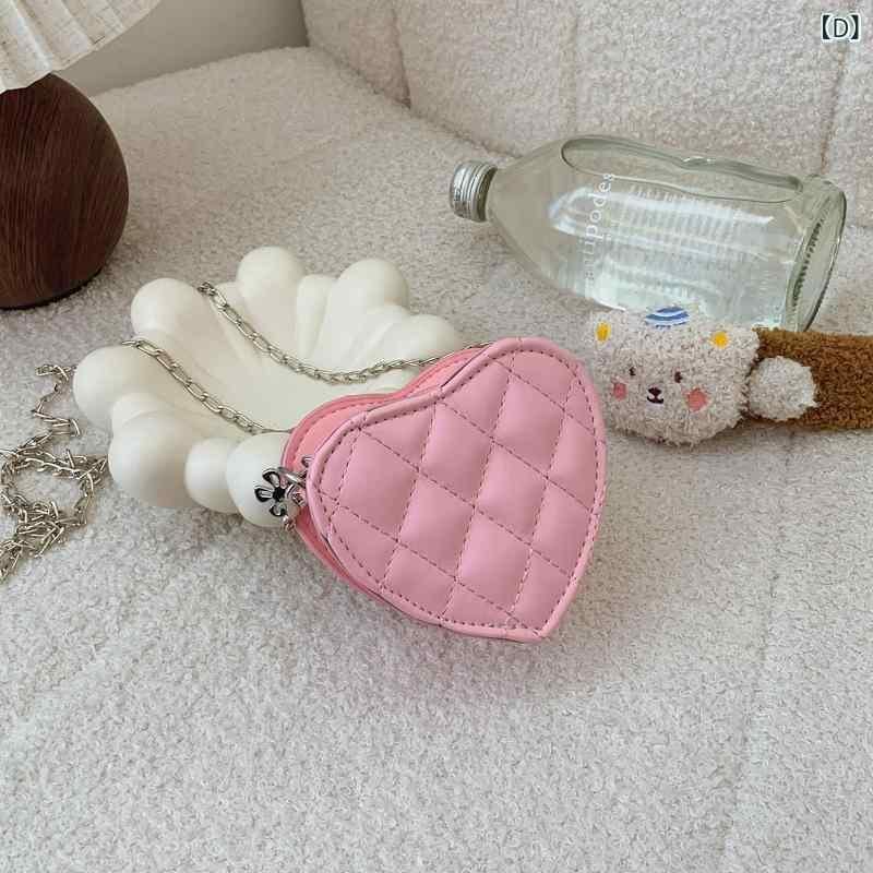 バッグ 女の子 キッズ 幼稚園児 ハート ミニ チェーン ショルダーバッグ 斜めがけ コインケース PUレザー 合成皮革 通気性 耐摩耗性 負担軽減 ステッチ パッチワーク おしゃれ カジュアル 普段使い レッド ホワイト グリーン ピンク ブラック