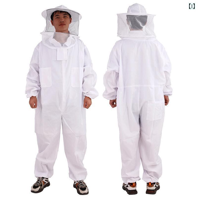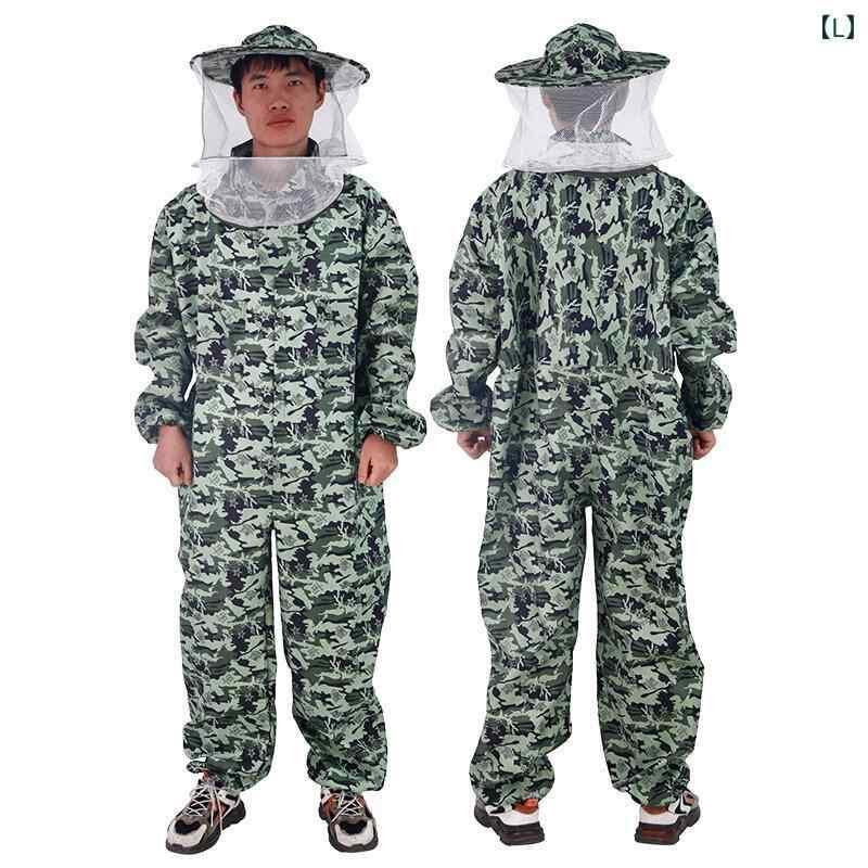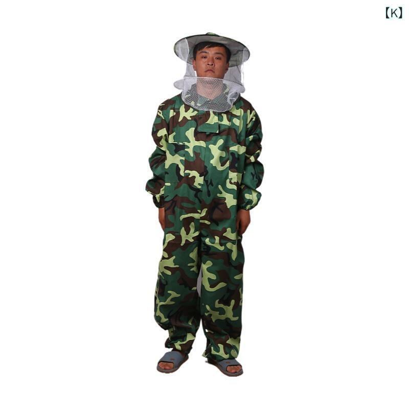 養蜂服 防蜂服 一体型 つなぎ 作業着 全身保護 丸帽子 フェイスベール メッシュ構造 通気性抜群 ハチ刺され防止 グローブ ナイロン製 白 迷彩カラー