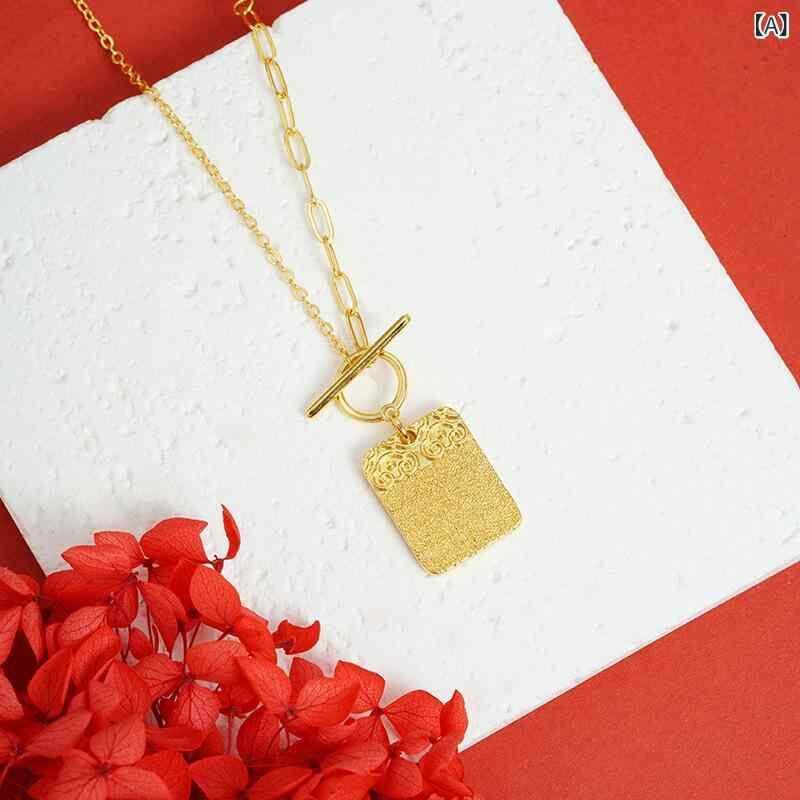 ネックレス 男女兼用 銅合金製 金メッキ OTバックル お守りプレート 鎖骨チェーン 四角モチーフ 普段使い 通勤 オフィスカジュアル スタイリッシュ 上品