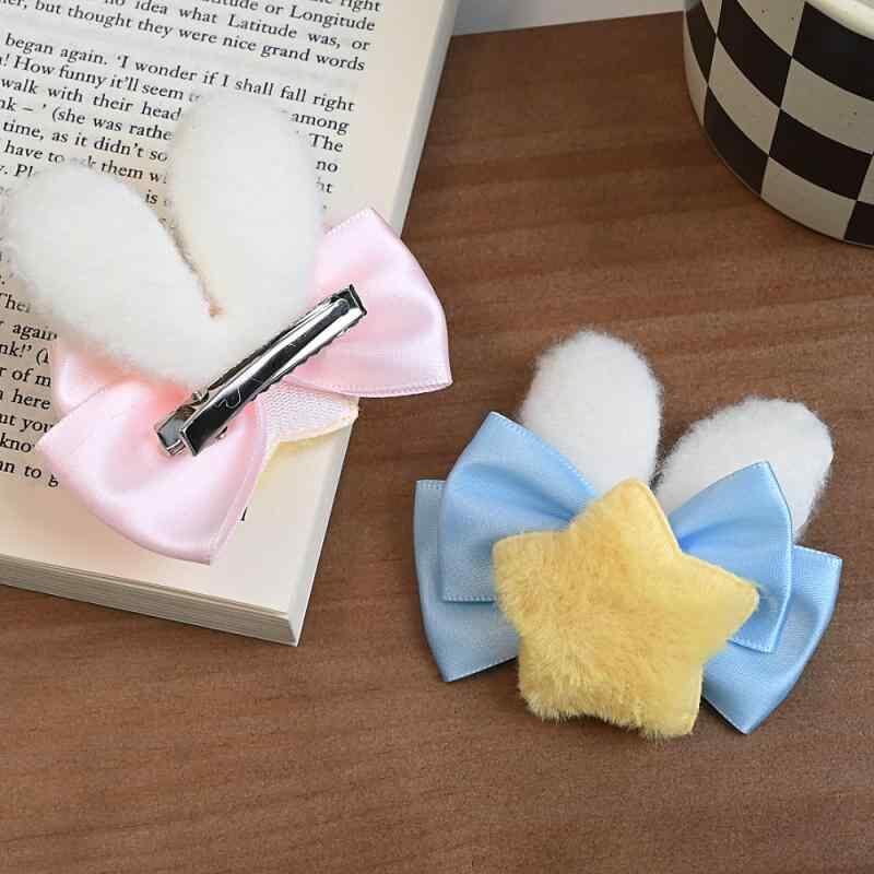 ヘアクリップ 女の子 かわいい うさぎ うさみみ ロリータ リボン モコモコ素材 髪飾り スイート フェミニン ガールズ ふわふわヘアアクセサリー パステルカラー