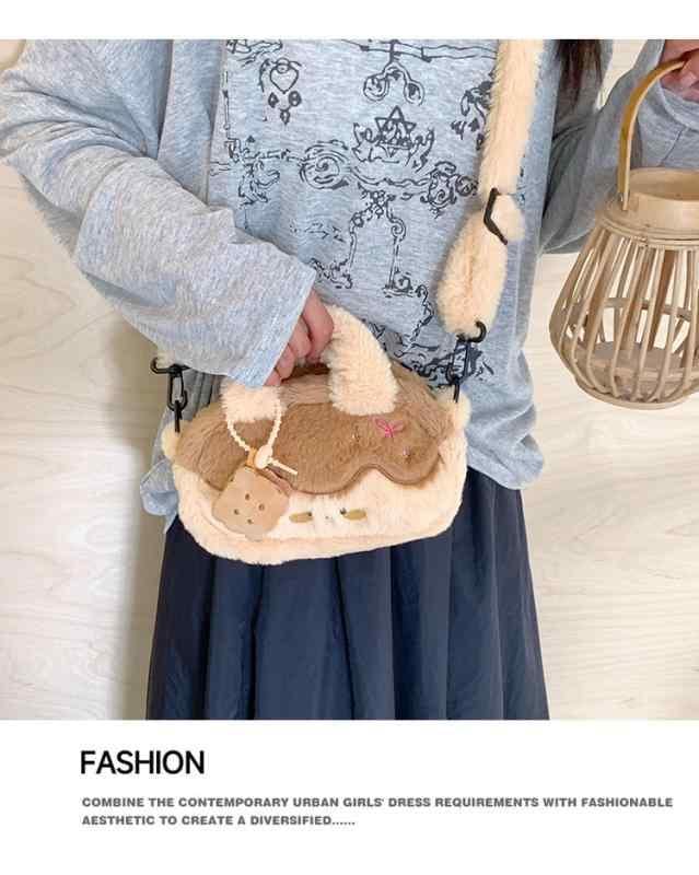 バッグ レディース ふわふわ モコモコ ボア素材 ショルダーバッグ ハンドバッグ 斜めがけ 手提げ 鞄 大容量 かわいい カジュアル 韓国風 アニマル柄デザイン ホワイト カーキ 普段使い お出かけ デイリーユース 通学 学生