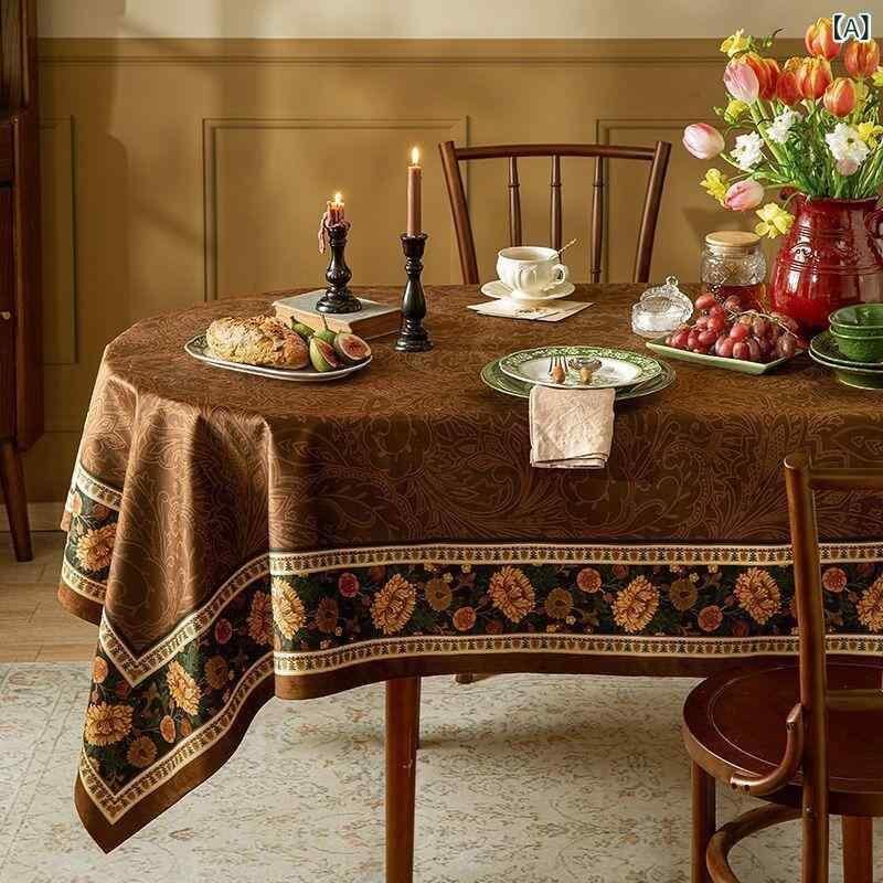 テーブルクロス アメリカン レトロ ヴィンテージ リビング ダイニングテーブル 食卓 コーヒーテーブル ローテーブル カバー 純綿 コットン 長方形 高級感 軽奢 ボタニカル 花柄