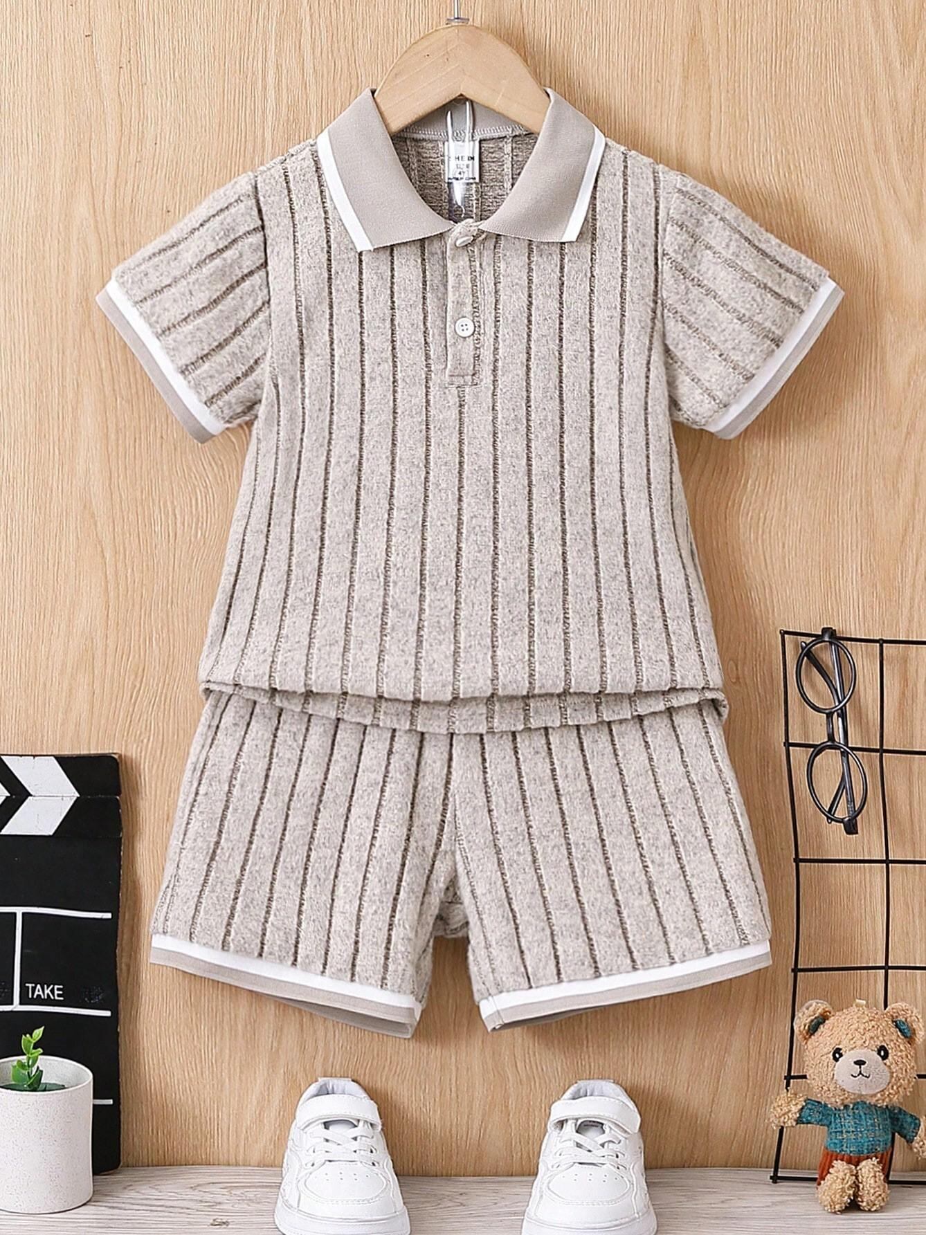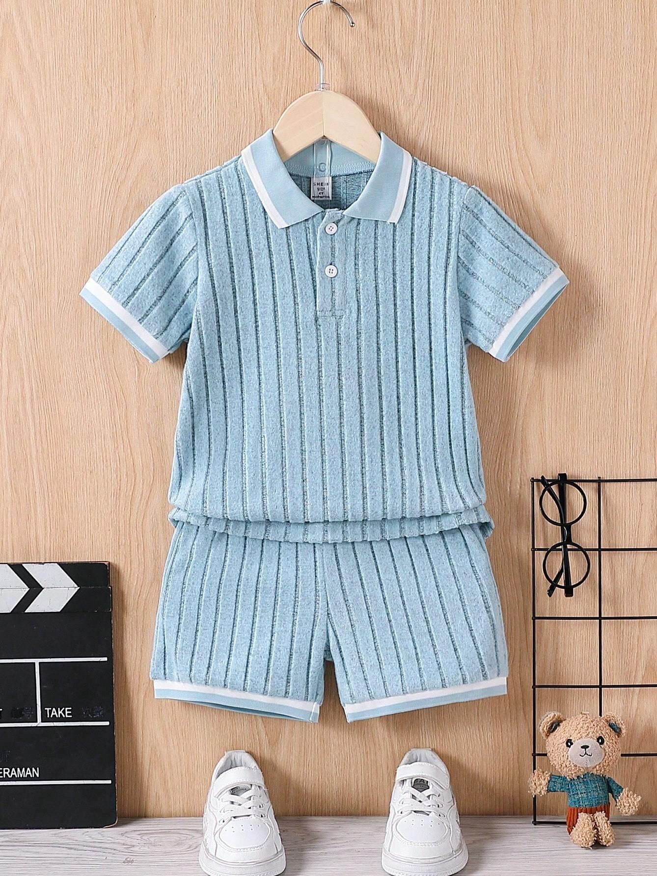 キッズ 男の子 女の子 ユニセックス 夏 セットアップ ポロ襟 半袖 ストライプ ショートパンツ 綿素材 薄手 カジュアル おしゃれ ルームウェア
