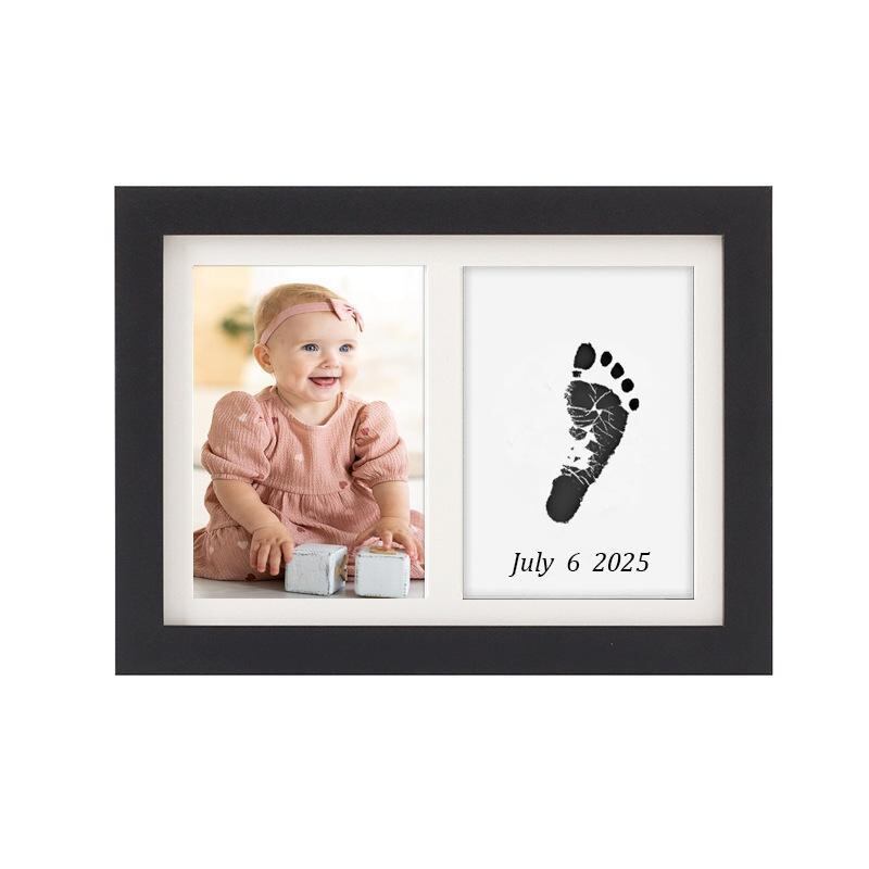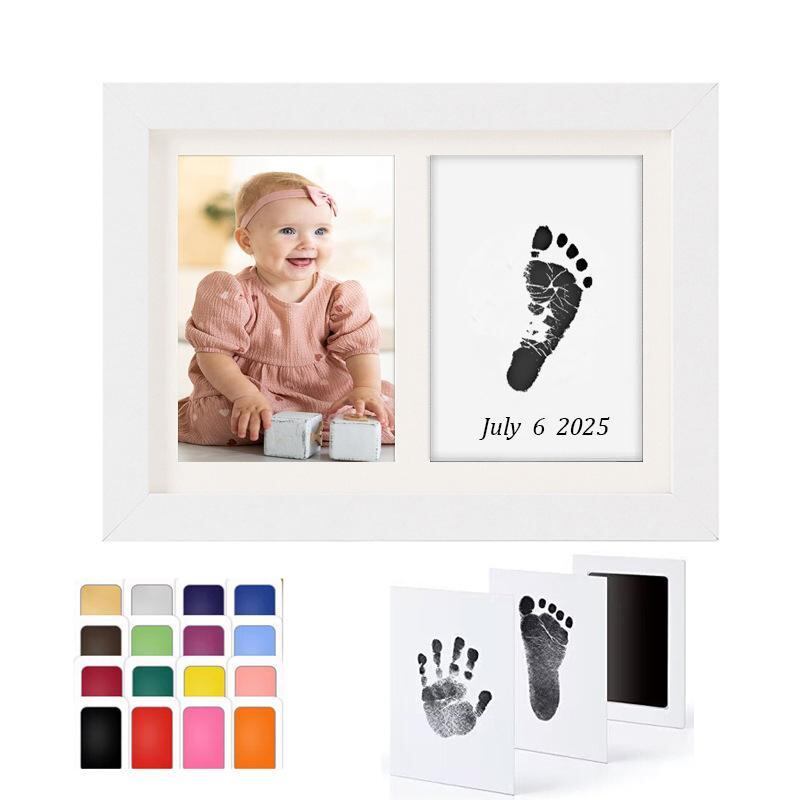 フォトフレーム ベビー 赤ちゃん 成長記録 手形 足形 キット 記念 出産祝い 誕生日 プレゼント 1歳 生後1ヶ月 卓上 写真立て 手が汚れない 安心 簡単 木製 シンプル モダン 白 黒 ナチュラル