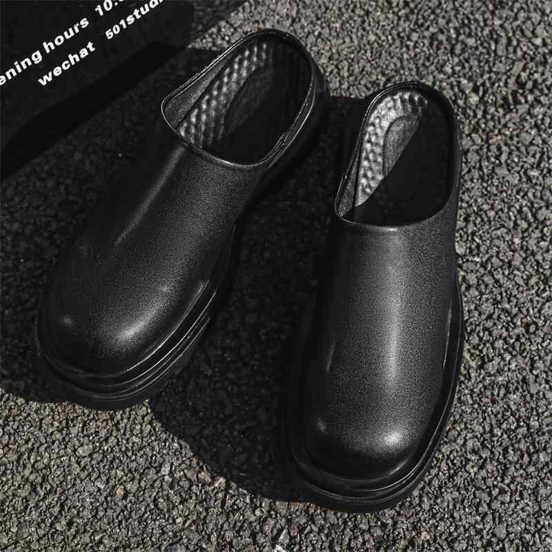 サンダル メンズ 男性用 スリッポン バックレス つま先あり 外履き 厚底 通気性 高級感 マイクロファイバー ブラック カジュアル 普段使い