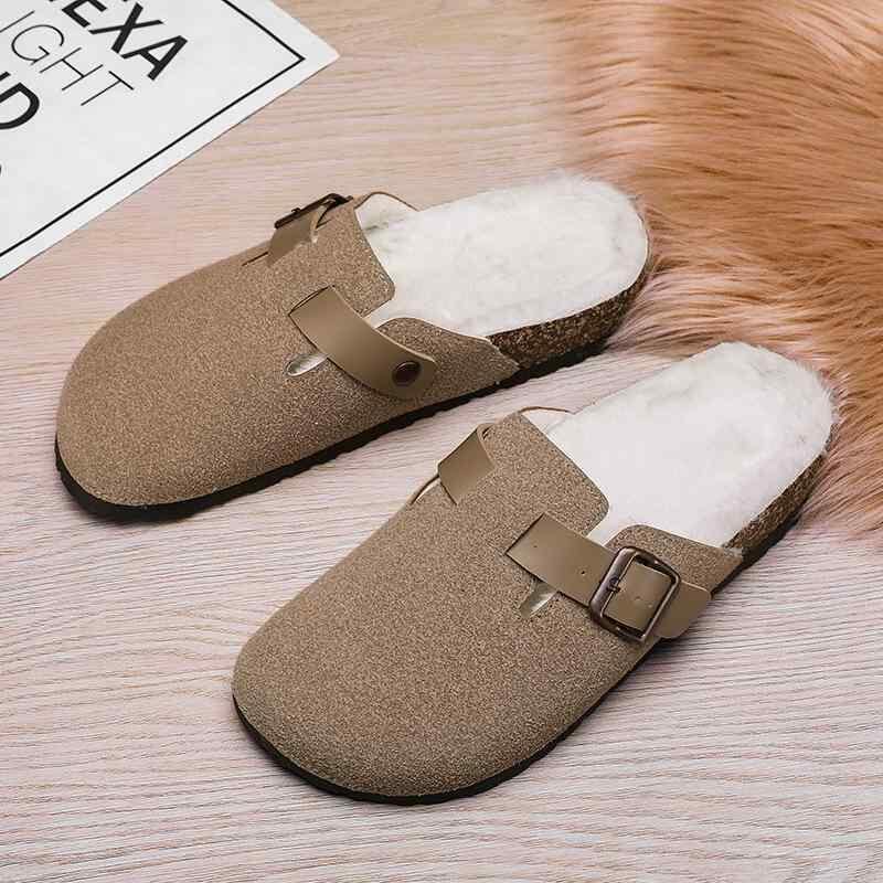 サボサンダル メンズ 冬用 裏ボア 暖かい スリッポン クローズドトゥ オフィス履き 室内履き カジュアルスタイル 普段使い スエード調素材 ラバーソール 滑り止め付き サンドベージュ ブラウン ブラック