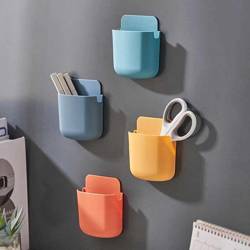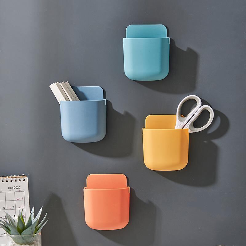 収納ボックス 壁掛け スマホ ホルダー 充電 小物入れ リモコンラック 穴開け不要 粘着式 ベッドサイド 寝室 リビング 玄関 バスルーム 洗面所 プラスチック製 多機能 省スペース