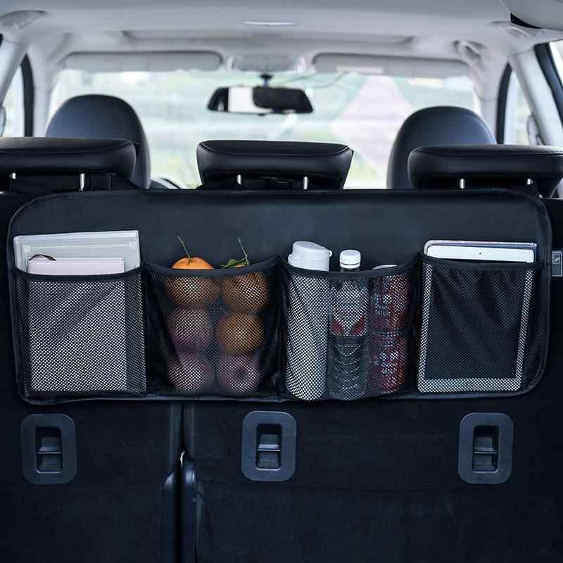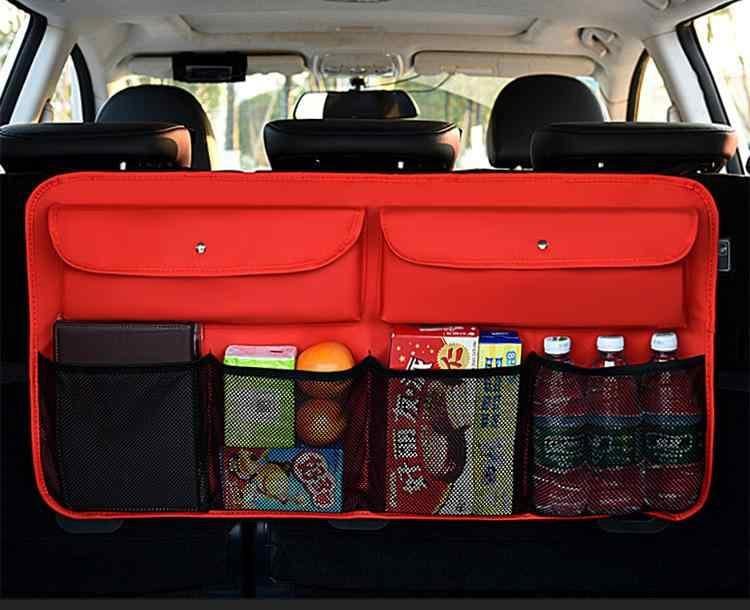 車載 収納バッグ シートバックポケット トランク用 後部座席 小物入れ レザー製 メッシュポケット 吊り下げ式 大容量 多機能 車内 整理 ドライブ 旅行 レッド ブラウン