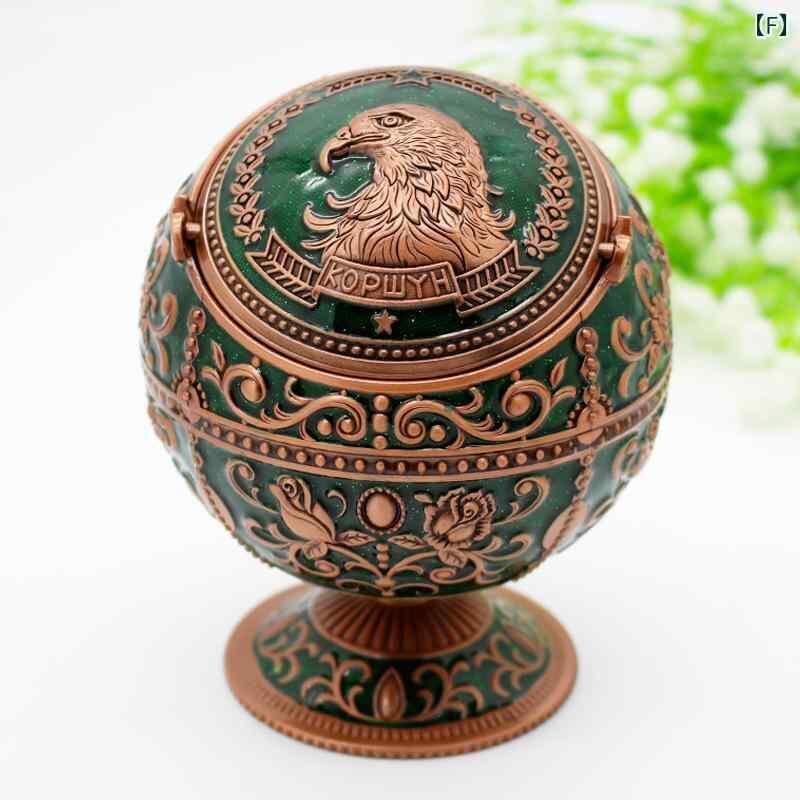 灰皿 男性向け 金属製 レトロ ヨーロピアンテイスト 地球儀 蓋付き イーグル エレファント ローズ デザイン リビング デスク 書斎 応接間 置物 プレゼント