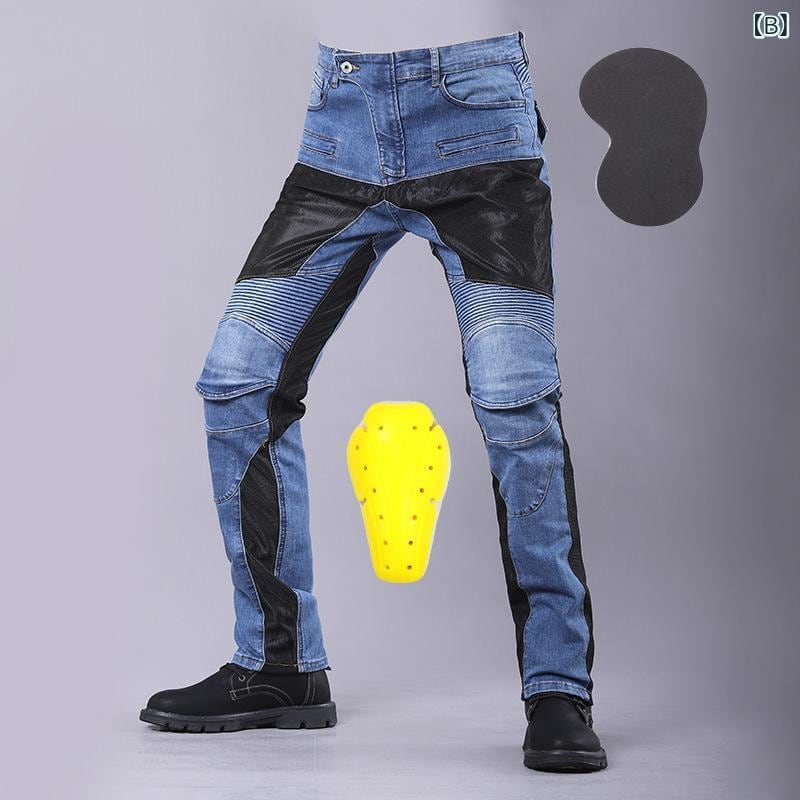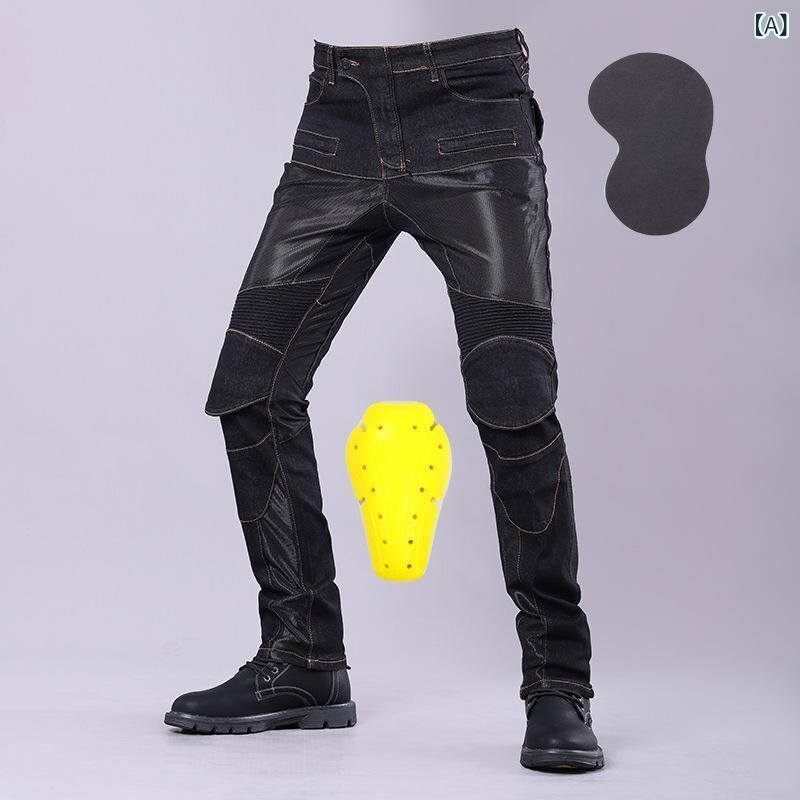パンツ ユニセックス バイク ライディング デニムパンツ ジーンズ 綿混 吸汗速乾 スリム 通気性 夏用 ツーリング バイク通勤 カジュアル ブラック ブルー