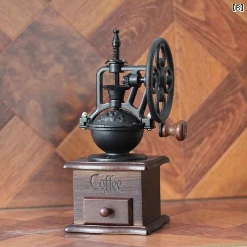 コーヒーミル 手挽き レトロ 観覧車デザイン 家庭用 コーヒー豆挽き器 アンティーク調 上質 インテリア おしゃれ 普段使い ギフトにおすすめ 挽きたてコーヒー 豊かな風味 重厚感