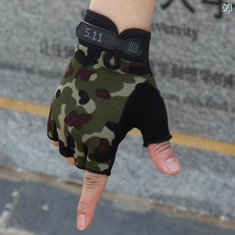 ・機能: 滑り止め・スタイル: 指あり手袋・種類展開: フルフィンガー、ハーフフィンガー・カラー展開: ブラック、迷彩、グリーン、サンド・サイズ: フリーサイズ