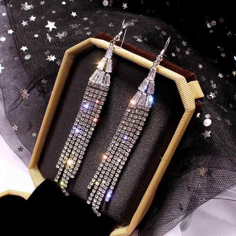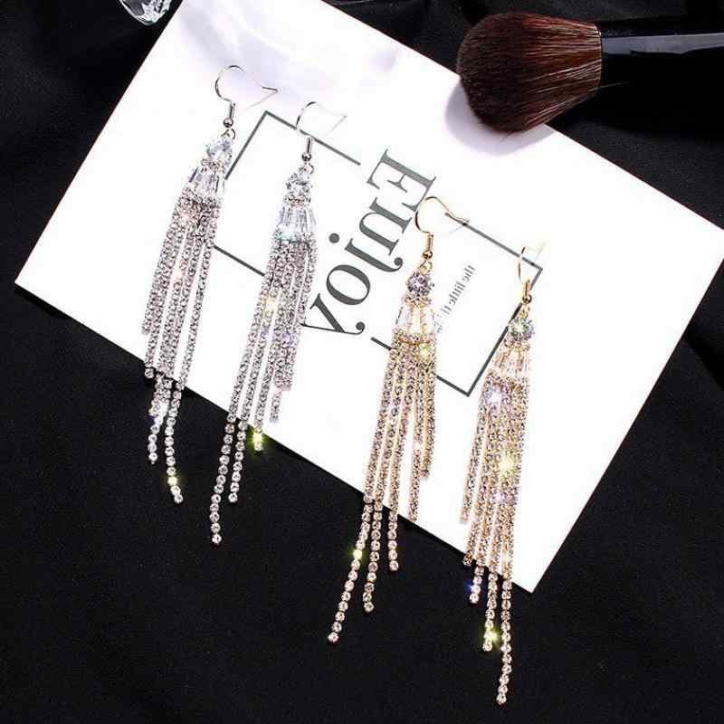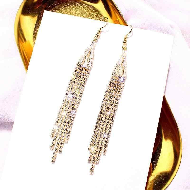 イヤリング レディース 欧米風 ファッション 個性的 ロング タッセル ラインストーン 大ぶり 存在感 エレガント 上品 万能 メタル ゴールド シルバー