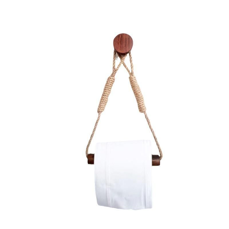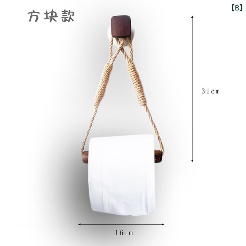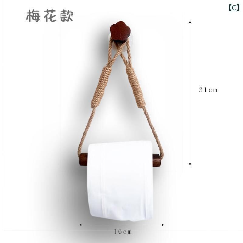 トイレットペーパーホルダー 手編み ハンドメイド 麻ひも 木製 ウォールナットカラー 穴開け不要 壁掛けタイプ シンプル モダン トイレ 洗面所 サニタリー おしゃれ 壁面収納 省スペース 賃貸住宅向け