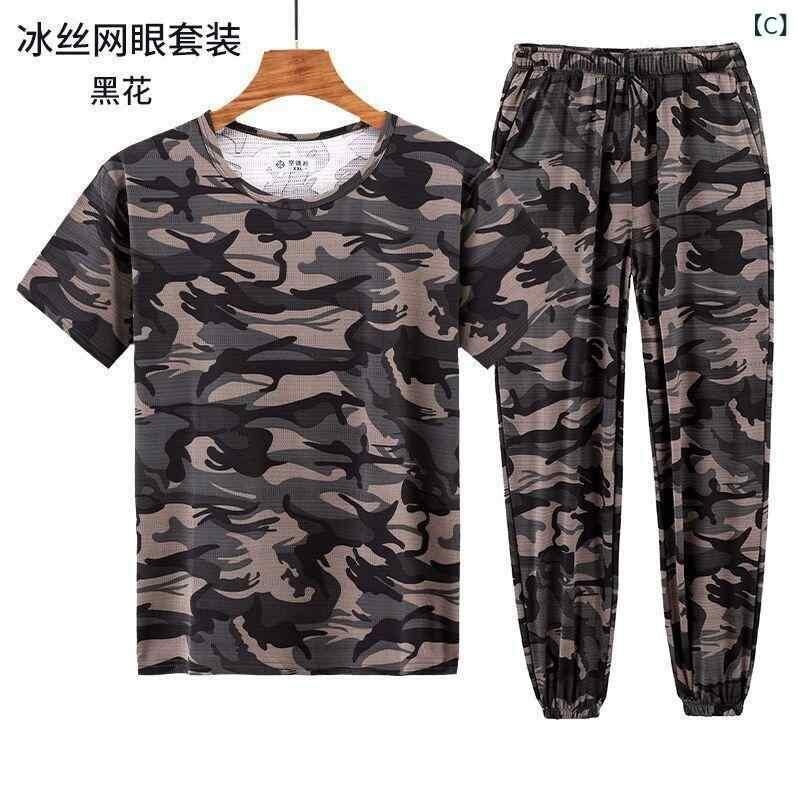 作業着 メンズ 上下セット 半袖 迷彩柄 ストレッチ 接触冷感 ゆったり 大きいサイズ 夏用 薄手 透湿速乾 ポリエステル混紡 ワークウェア カジュアル 現場作業服