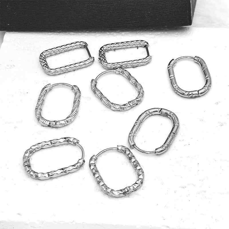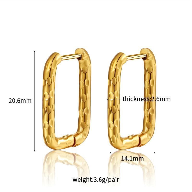 イヤリング ユニセックス トレンド スクエア 幾何学模様 シンプル スター柄 花柄 型押し チタン鋼 ゴールドカラー アレルギー対応
