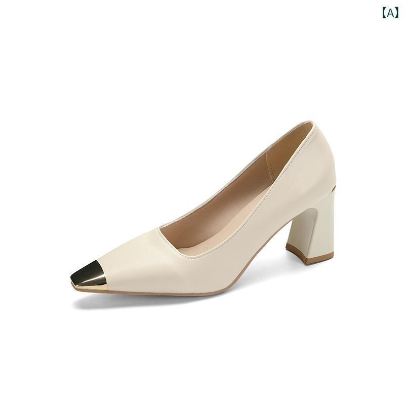 ハイヒール パンプス レディース 細ヒール スクエアトゥ メタルパーツ デザイン性 高級感 エレガント 浅口 柔らか人工皮革 オフィス 通勤 カジュアル フォーマル ホワイト ブラック ベージュ系