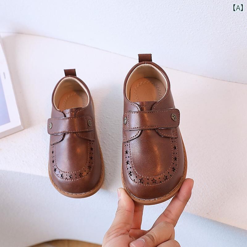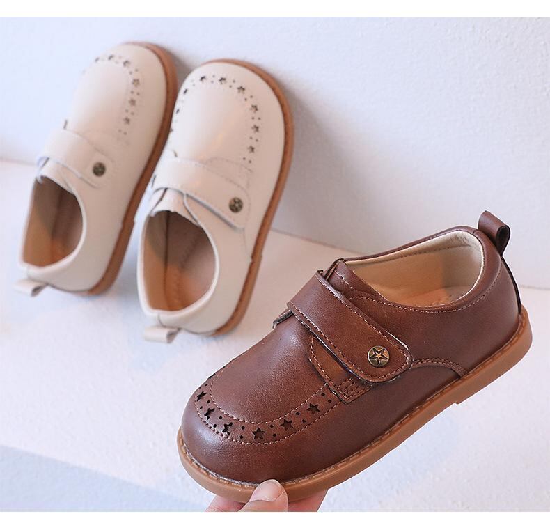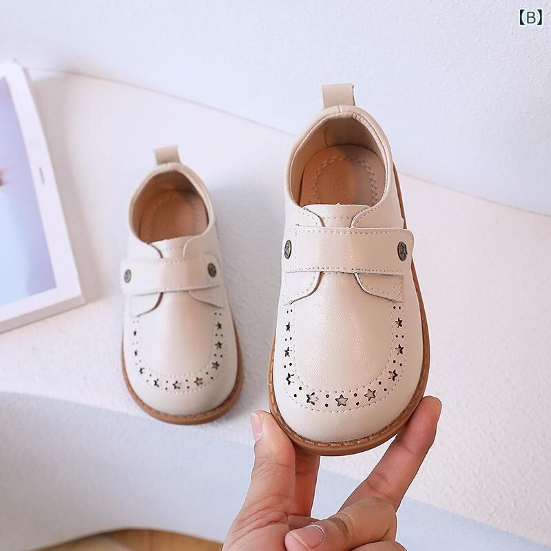 キッズシューズ 男の子 女の子 本革 豚革 ソフトソール 柔らかな履き心地 防滑 滑り止め 面ファスナー ローファー風 ブリットスタイル 万能 コーデしやすい カジュアルスタイル ライトブラウン アイボリー 秋冬 幼児靴