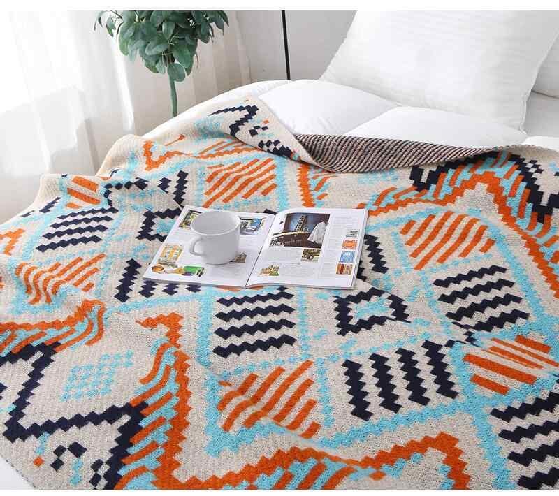 ブランケット 北欧風 ニット フリンジ 羊毛 カシミヤ オフィス 昼寝 冷房対策 ひざ掛け 民泊 ベッドスロー ソファカバー オールシーズン 幾何学模様