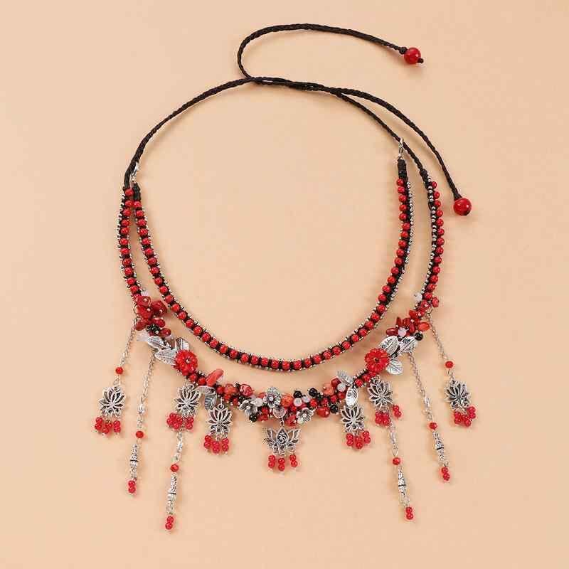 髪飾り レディース 古風 中華風 エスニック風 レトロ クラシカル 民族風 蓮 ロータス タッセル 流蘇 二重 水滴型 額飾り 眉間飾り ヘッドチェーン レッド 赤系 イベント 舞台 発表会 コスプレ 華やか ゴージャス 上品