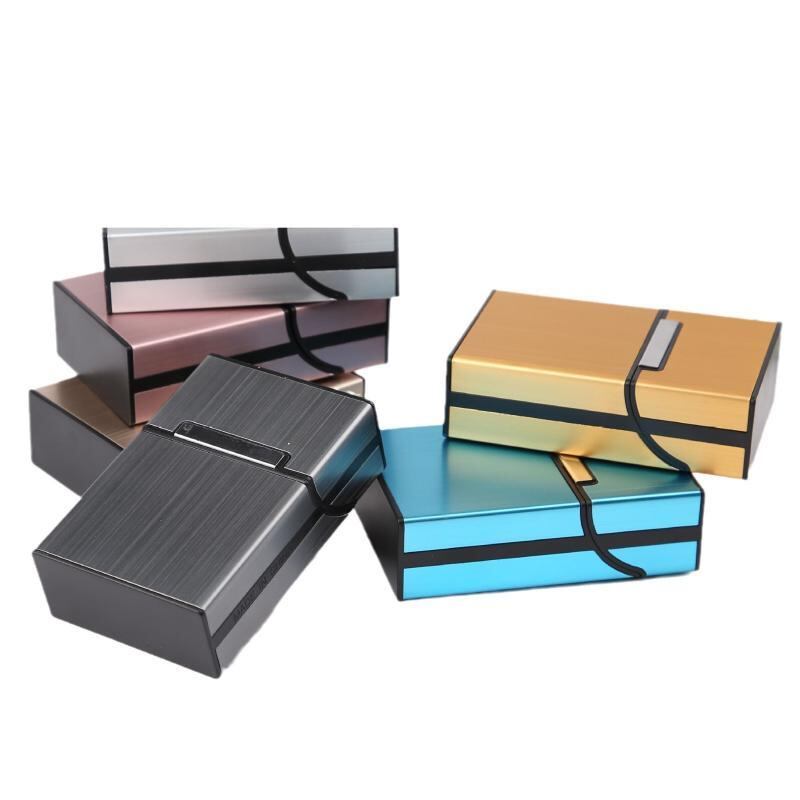 シガレットケース メンズ アルミ合金製 プラスチック 軽量 スリム ブラッシュ加工 メタリック マグネット開閉式 名入れ可能 携帯用 普段使い おしゃれ ゴールド シルバー ブラック ブルー ピンク グレー シンプルデザイン